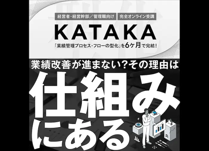 型化「KATAKA」は、経営幹部を中心に、業績責任者、社員がそれぞれが主体的に業績を作っていける環境が整い、継続的に業績アップができる仕組みを作り上げることを目指します。